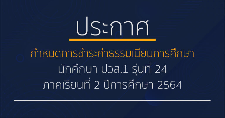 Uncategorized กำหนดการชำระค่าธรรมเนียมการศึกษา นักศึกษา ปวส.1 รุ่นที่ 24 ภาคเรียนที่ 2/256408/10/202108/10/2021